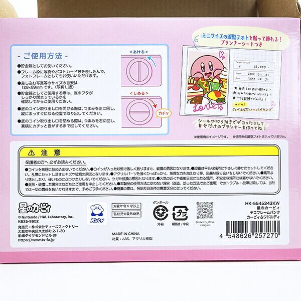 星のカービィのデコフレームバンクです♪カービィ&ワドルディ好きにはたまらない♪アクリルパーツが可愛い♪フレーム枠に推しの写真やポストカードを差し込んで、フォトフレームにもなる優れもの♪底面から、お金を取り出せますよ♪机に飾って、楽しくお金を貯めちゃいましょう☆彡