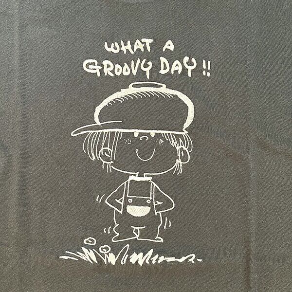 水森亜土 刺繍ロングスリーブTシャツ オトコノコ スモークブラック 長袖 アパレル