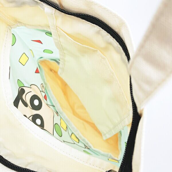 中央のファスナーを開けると伸びるトートバッグです。 用途に合わせてサイズ調整できる便利アイテム☆彡ファスナーを開けるとまるでしんちゃんが飛び出でくるデザインで可愛いですよ♪【サイズ】W280×H225×D120mm(ファスナー閉じた状態)
