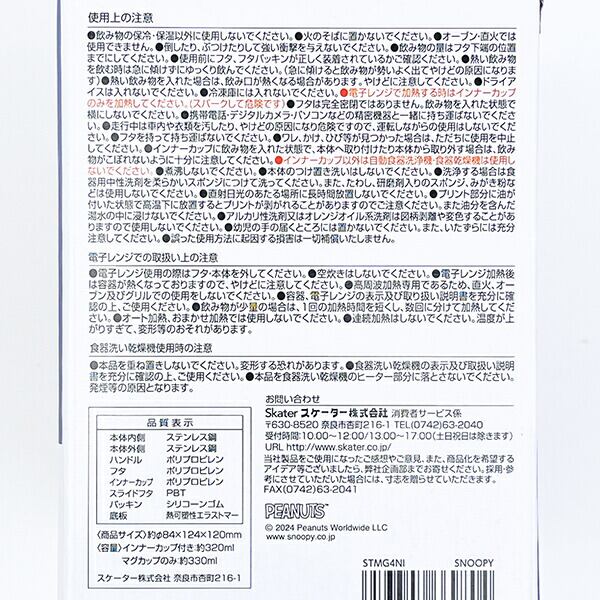 スヌーピーの電子レンジで温めができるインナーカップ付きステンレスマグカップです。真空断熱2重構造マグカップ+インナーカップで高い保温・保冷力!インナーカップ付きとマグカップのみの2wayで使用可能です。冷たい飲み物も温かい飲み物もOKなので使い勝手◎底面は滑りにくい底板付きで安心です。インナーカップのみ電子レンジ使用可◎【容量:320ml】