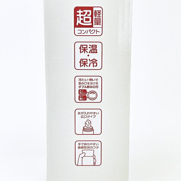 可愛いデザインの冷たい・熱いで飲み口を分けるW飲み口タイプのステンレスボトルです。持ち運びしやすいコンパクトな軽量ボディー。注ぎ口は氷が入れやすい広口になっています。持ちやすく開けやすい曲線形状のフタがポイント!真空二層構造なので、保温・保冷効果が長持ち♪※【ご注意】熱い飲み物を入れた際は火傷の恐れがありますので飲める程度まで冷ましてからお飲み下さい。※【容量:350ml】