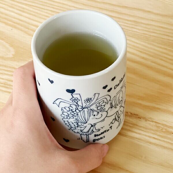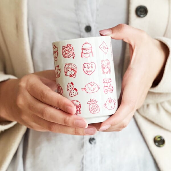 水森亜土のアートが寿司湯呑風にアレンジされた、どこか懐かしくておちゃめなマグです。やさしい凹凸のある撥水加工で、手に心地よい質感。たっぷりサイズなのも嬉しい!電子レンジ・食洗機にも対応しています。
