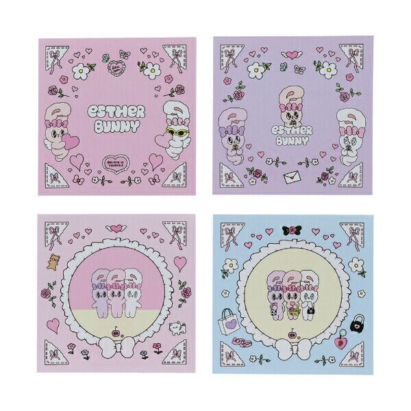 韓国系アメリカ人であるEsther Kim氏がデザインした、POPでガーリーなテイストのウサギのキャラクターのメモ用紙です。窓から本文デザインが見える仕様!使うたびに見える本文が変わります♪