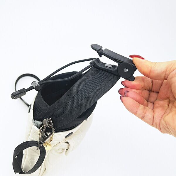 ドリンク収納だけでなく小物を収納するポーチとして、取り外し可能なショルダーベルトを付ければショルダーバッグとしても使うことが出来ます。口をぎゅっと絞るふたカバーもついているので、収納した物がこぼれる心配もありません。1台で様々な場面で使えるマルチなアイテムです。