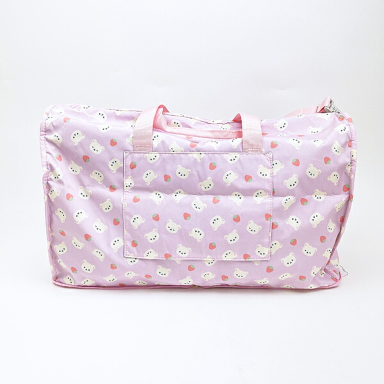 リラックマの普段使いから旅行用まで、幅広く使える軽いボストンバッグです♪容量約38LでスーツケースSサイズと同等の容量です。約1〜3泊のご旅行におすすめ。使わないときはコンパクトに折りたたんで収納し、使いたいときにぱっと広げて使えます。バッグ背面にはスーツケースのキャリーバーに通せるようにキャリーバー通しが付いているので、旅行の際はとっても便利。バッグの開口部はファスナーで閉じられるので中身がこぼれる心配がありません。バッグ前面と側面にはポケットもついているので、小物を収納するのに便利です。さらに内装にもポケットが付いています。また、取り外し可能なショルダーベルト付きなので、肩に掛けて持ち運ぶこともできます☆彡