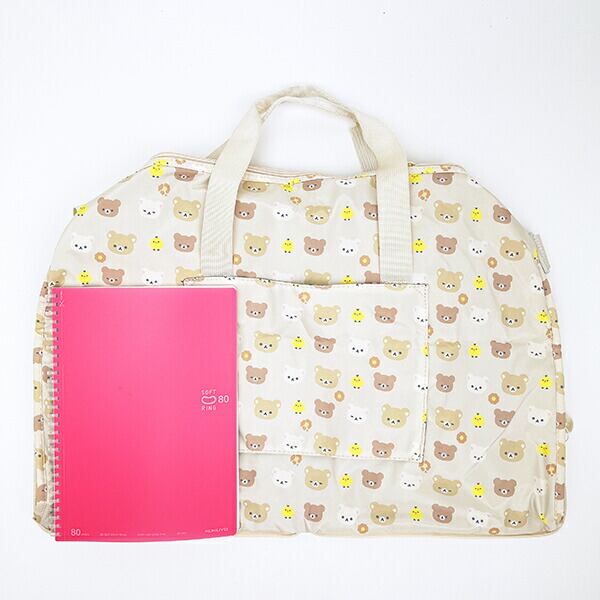 リラックマの普段使いから旅行用まで、幅広く使える軽いボストンバッグです♪容量約38LでスーツケースSサイズと同等の容量です。約1〜3泊のご旅行におすすめ。使わないときはコンパクトに折りたたんで収納し、使いたいときにぱっと広げて使えます。バッグ背面にはスーツケースのキャリーバーに通せるようにキャリーバー通しが付いているので、旅行の際はとっても便利。バッグの開口部はファスナーで閉じられるので中身がこぼれる心配がありません。バッグ前面と側面にはポケットもついているので、小物を収納するのに便利です。さらに内装にもポケットが付いています。また、取り外し可能なショルダーベルト付きなので、肩に掛けて持ち運ぶこともできます☆彡