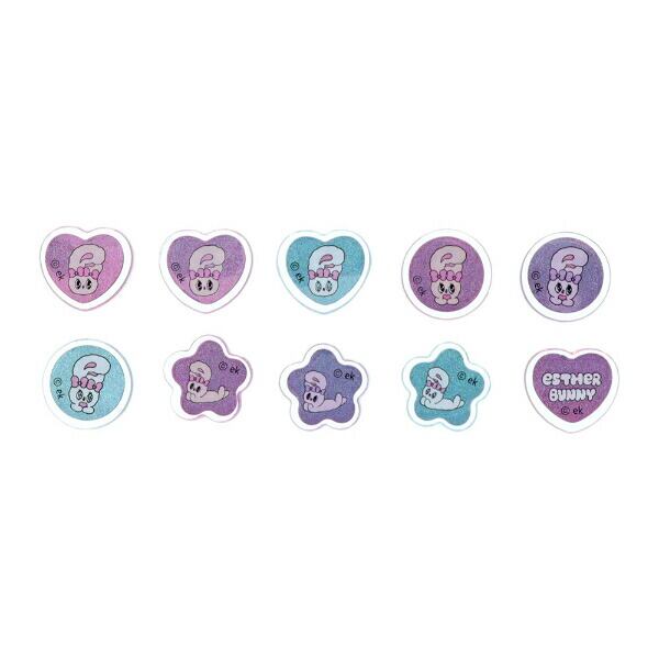 韓国系アメリカ人であるEsther Kim氏がデザインした、POPでガーリーなテイストのウサギのキャラクターの人気のおはじき風の小さくて厚みのあるシールです。カラフルでキラキラなエスターバニーがとってもキュート♪大切なコレクションにも◎