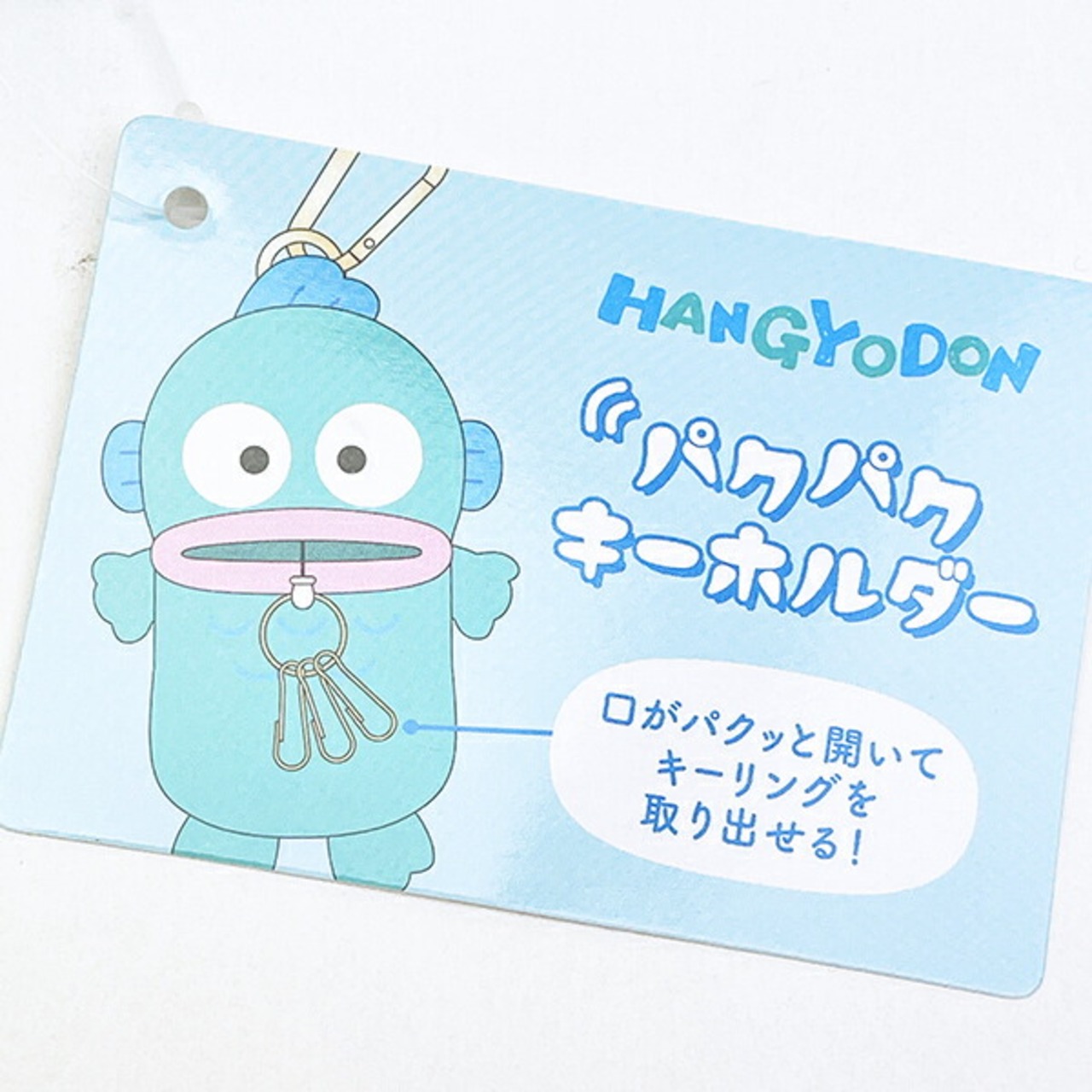 ハンギョドンのパクパクキーホルダーです♪触り心地も◎ハンギョドンの口がパクッと開いて、リール付きのキーリングを取り出せる☆カラビナが付いているので、バッグに付けてハンギョドンと一緒にお出掛けしましょう☆彡