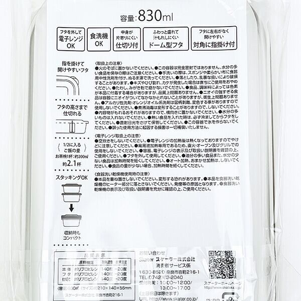 〜天然鉱石タルク配合〜石油由来成分削減!環境に優しい天然鉱石を20%樹脂に配合したフードランチケースです。食材が潰れにくいふわっとフタ。中身が片寄りにくい、高めの仕切付き。指をかけて開けやすいフタ。スタッキング仕様で収納時もコンパクト!フタを外して電子レンジOK。◎食洗機・電子レンジ使用可◎【容量:830ml】