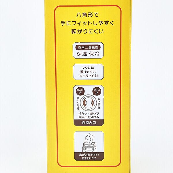 踊ってるようなピカチュウが可愛いステンレスマグボトルです。 珍しい八角形の形は握りやすく転がりにくい♪ 冷たい・温かい飲み物両方OK! W飲み口でサイズが大・小あり、冷たい熱いを飲み分けやけど防止にも。 広口タイプで氷も入れやすく。洗いやすいのも嬉しい♪ ピカチュウ好きのお子さまにオススメです☆彡 【容量:350ml】