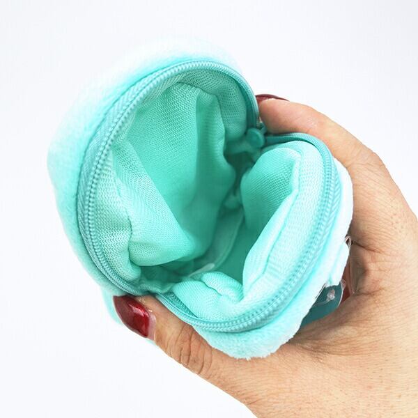 コロンとしたフォルムがかわいいカラビナ付きポーチです。リップやお菓子を入れるのに便利なミニサイズ♪