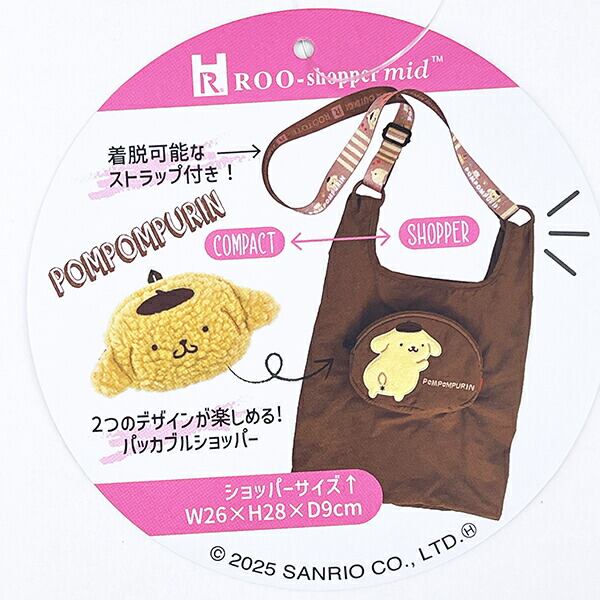 ポムポムプリンのショッパー型デザインのトートバッグです。長財布、スマホ、ボトル、A5ノート、ポーチなどが収納可能◎取り外し&長さ調整可能な、両面プリントのショルダーベルト付きなのでシーンに合わせて、手持ち・肩掛け・斜め掛けと使い分けができて便利♪振り向きポーズの刺繍が可愛い真ん中のポケットも小物を入れるのにぴったり☆使わないときは、このポケットをひっくり返してショッパー本体を収納すれば、もふもふのキャラクターフェイスに早変わり!!コンパクトに持ち運びができちゃいます☆背面のルーポケットはスマホなど出し入れの多いアイテムの収納に便利です♪【サイズ】平置き時:約W25.5×H(中央部分)27.5(持ち手込)37.5×D9cm、ショルダー最長:約85cm、収納時:約W16.5×H12×D4cm
