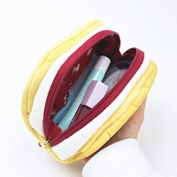 まるでクリームサンドみたいなポーチです。焼き色が入っているのがポイント♪見た目はボリュームがありますが、中身はしっかり入る広さがあり優秀!裏生地もカワイイ◎