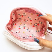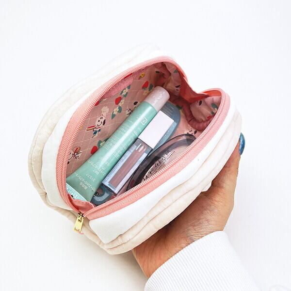 まるでクリームサンドみたいなポーチです。焼き色が入っているのがポイント♪見た目はボリュームがありますが、中身はしっかり入る広さがあり優秀!裏生地もカワイイ◎