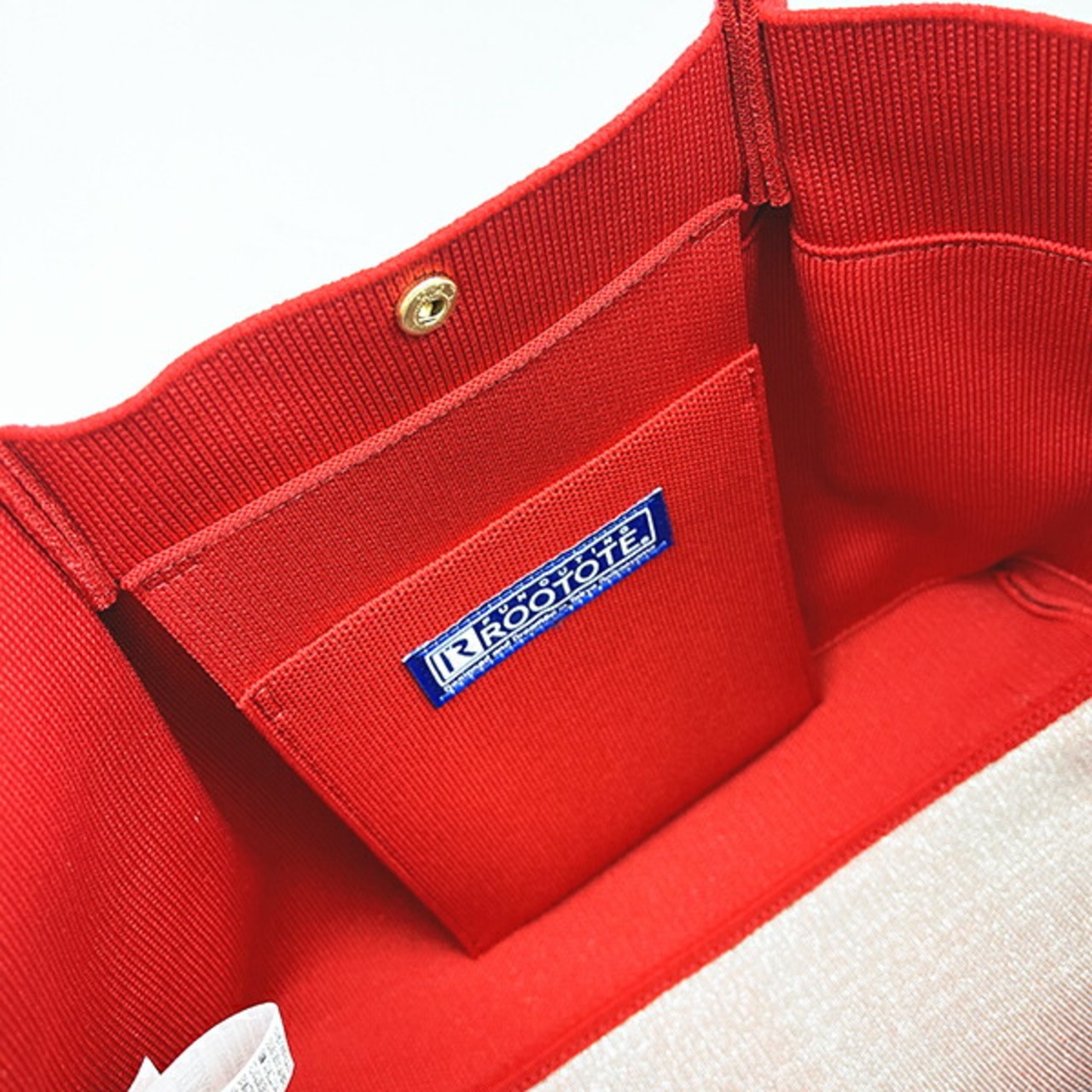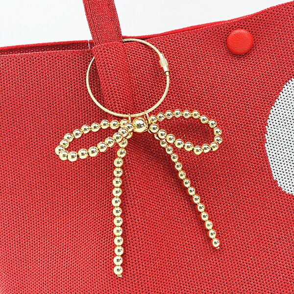 ハローキティの素材をフル活用したルートート「ルフル」。お財布、ボトル、A5ノート、ポーチなどがらくらく収納できて見た目以上のたっぷり容量がgood♪キラキララメ入りの糸で編まれた本体はサラリとした手触りでニットなのにハリがあり、自立するのも魅力です☆取り外し可能なリボン型のチャーム付きが嬉しいポイント♪きらめくラメとリボン、これからのホリデーシーズンにもぴったり☆持っているだけで華やかになること間違いなしです☆彡