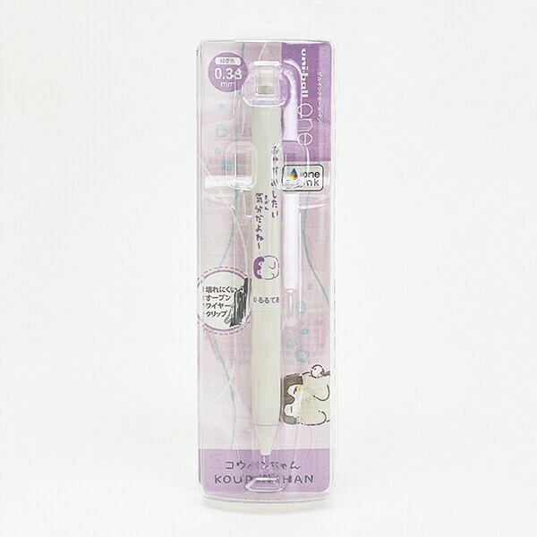 ふとした瞬間に癒される、コウペンちゃんらしいイラストが描かれているユニボールワン。ノートやメモを見た時に「くっきり」主張するインク描線が特徴です◎◆商品サイズ:139.5×10.5×15mm、ボール径:0.38mm◆インク色:桔梗