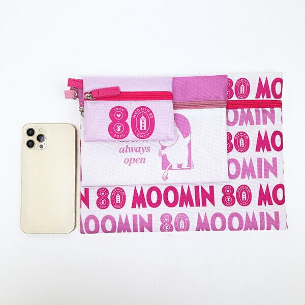 ムーミン 80周年アート 3連ポーチ PK 80周年アート MOM ピンク MOOMIN