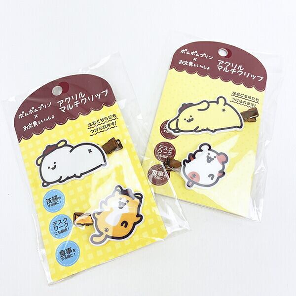 癒し系人気キャラクターの「ポムポムプリン」と「お文具といっしょ」がコラボ♪アクリルマルチクリップは左右どちらにもつけられる便利な2個セットです◎