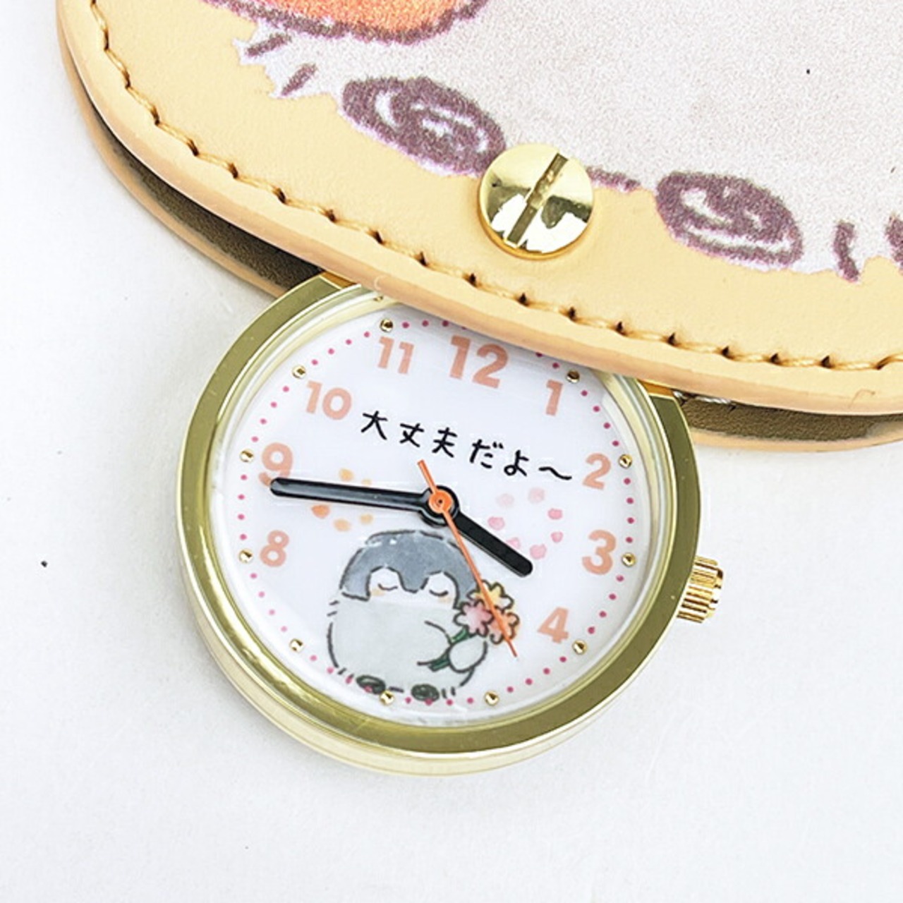コウペンちゃんのストラップ付きキーチェーンウォッチです。普段はおしゃれなダイカットキーチェーンとして♪時間が気になったら時計をくるっとスライドしてチェックできます!時計を傷つかないように防止できるのも嬉しいですね◎◆サイズ:時計 直径27×D8mm、時計+カバー D14mm、ポーチ H73×W75mm