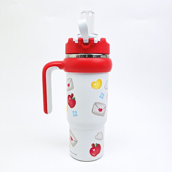 ハローキティのハンドル付き2WAYストローステンレスタンブラーです。真空二重構造で保温&保冷効力あり!口当たりが良く飲みやすいシリコーン製のストロー飲み&ソフトなプラスチックの直飲みの2WAY仕様がgood♪飲む時に後ろに倒すと戻らず固定。キャップが倒れてくるのを防ぐキャップロック設計なのでストレスフリーで使えて◎大容量で広口なので注ぎやすく洗いやすい☆なんと車などのドリンクホルダーにも対応できちゃうのでぜひ普段使いのお供にいかがですか?【サイズ】直径102(本体径78×298mm(ハンドル部含まず)、【容量:830ml】
