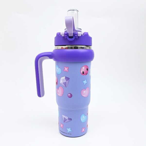 クロミのハンドル付き2WAYストローステンレスタンブラーです。真空二重構造で保温&保冷効力あり!口当たりが良く飲みやすいシリコーン製のストロー飲み&ソフトなプラスチックの直飲みの2WAY仕様がgood♪飲む時に後ろに倒すと戻らず固定。キャップが倒れてくるのを防ぐキャップロック設計なのでストレスフリーで使えて◎大容量で広口なので注ぎやすく洗いやすい☆なんと車などのドリンクホルダーにも対応できちゃうのでぜひ普段使いのお供にいかがですか?【サイズ】直径102(本体径78×298mm(ハンドル部含まず)、【容量:830ml】