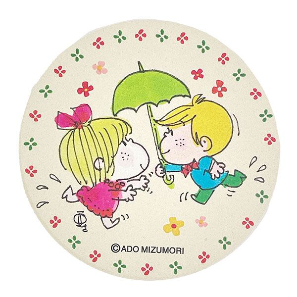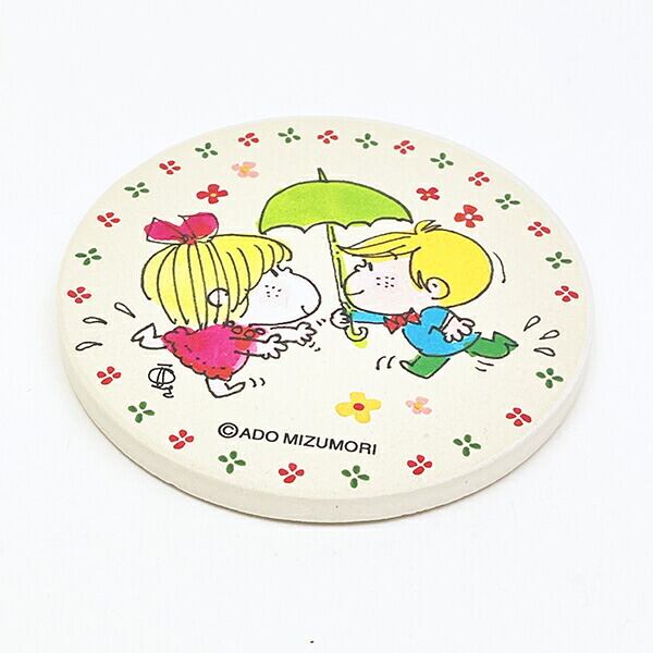 亜土ちゃんのイラストが描かれた吸水コースター。優しい色合いがとってもキュート♪コップの水滴を吸い取る吸水コースターはお家やオフィスで大活躍してくれますよ!