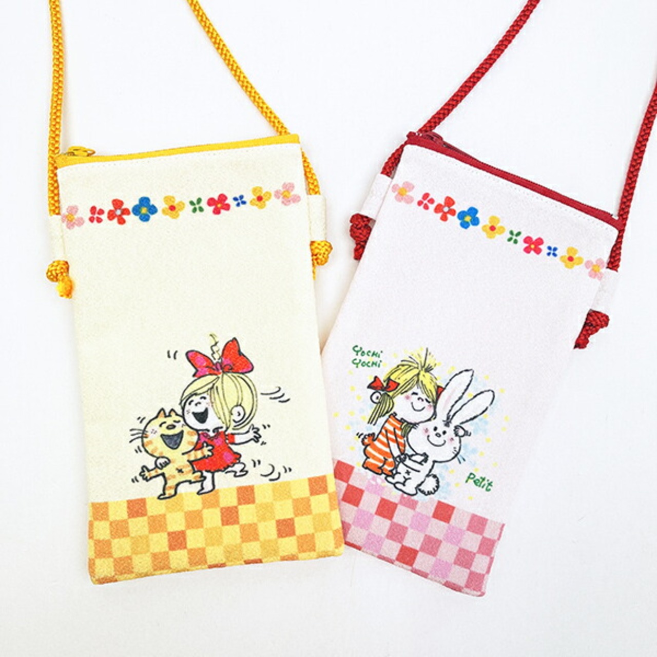ちりめん生地の和テイストがかわいいシリーズです♪スマホがぴったり入る小さめショルダーはちょっとしたおでかけの時にとっても便利。和テイストなのでお着物にもぴったりですね♪