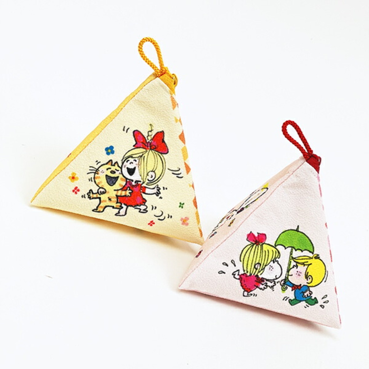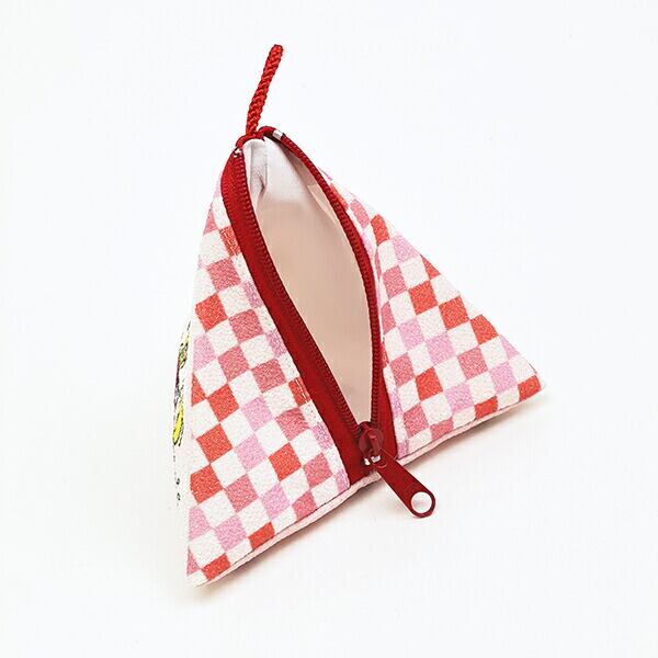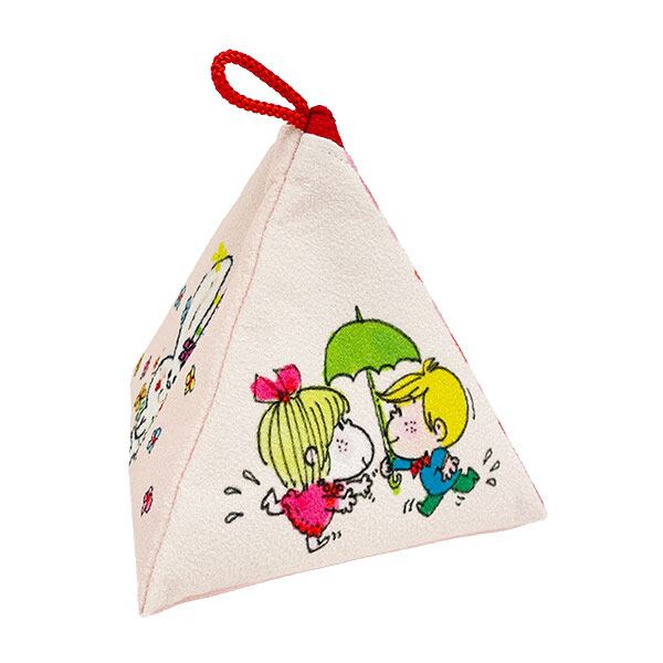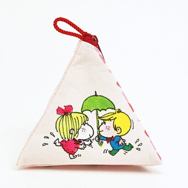 ちりめん生地の和テイストがかわいいシリーズです♪珍しい三角形のポーチは持っているだけでワクワクしちゃう可愛さ◎ちょっとしたものを入れて亜土ちゃんとお出かけしてくださいね♪