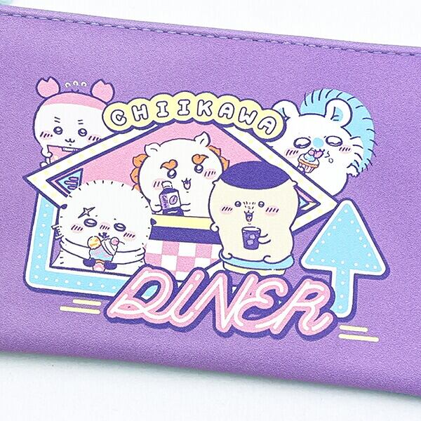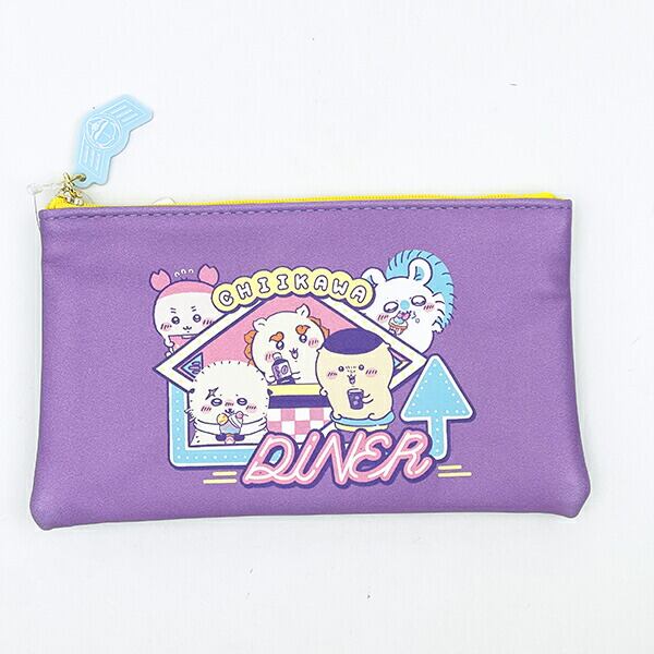 アメリカンダイナーで楽しく食事をするちいかわたちを80年代ポップなカラーリングでアレンジしました!背景の小物にも注目!!のフラットぺンケースです。表面はPU生地、裏面がPVCのラメ生地のフラット型ペンケースです★チャックには可愛いアクリルチャーム付き♪同シリーズもございますので揃えてみませんか♪