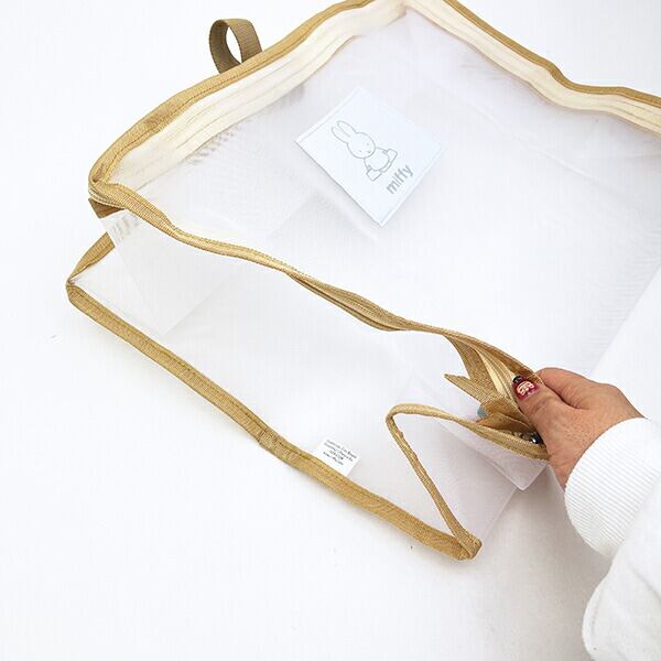 ミッフィーのメッシュオーガナイザー(収納袋)です。衣類やタオルなどの収納にちょうどいいサイズ感が◎移動に便利な取っ手付き。ボックス形状なので物を入れた状態で重ねて収納もできちゃいます♪これさえあればクローゼットもスッキリ収納できて嬉しい〜☆M、Lサイズあるのでぜひお好きなサイズを揃えてみてください♪