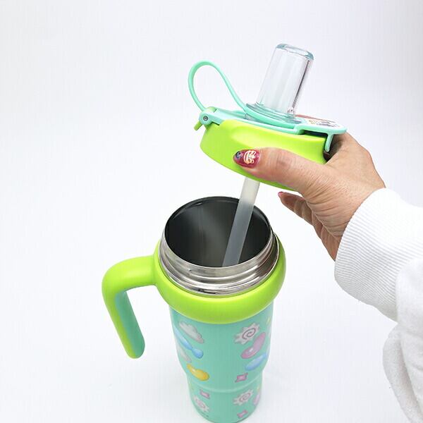 ハンギョドンのハンドル付き2WAYストローステンレスタンブラーです。真空二重構造で保温&保冷効力あり!口当たりが良く飲みやすいシリコーン製のストロー飲み&ソフトなプラスチックの直飲みの2WAY仕様がgood♪飲む時に後ろに倒すと戻らず固定。キャップが倒れてくるのを防ぐキャップロック設計なのでストレスフリーで使えて◎大容量で広口なので注ぎやすく洗いやすい☆なんと車などのドリンクホルダーにも対応できちゃうのでぜひ普段使いのお供にいかがですか?【サイズ】直径102(本体径78×298mm(ハンドル部含まず)、【容量:830ml】
