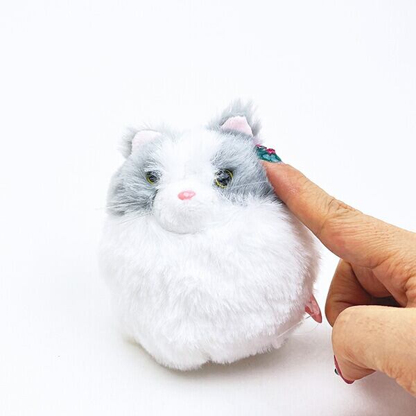 ふわふわ生地がきもちいいぬいぐるみです。ビーンズが入っていて下に重心が行くような設計になっているため、コロンと転がすと起きてくれます。