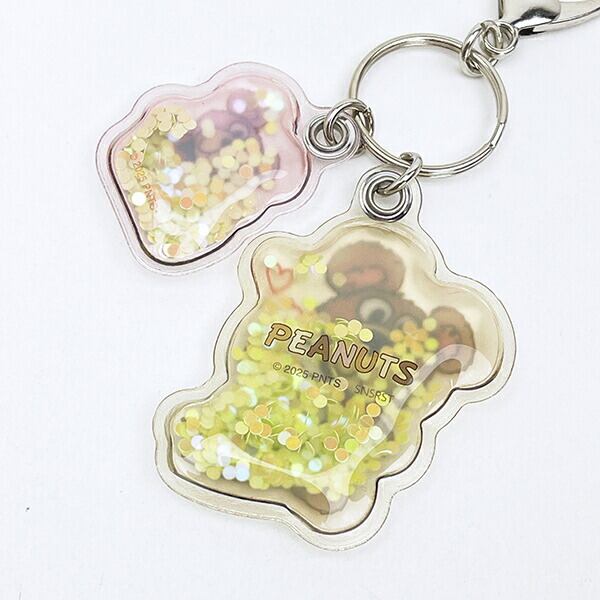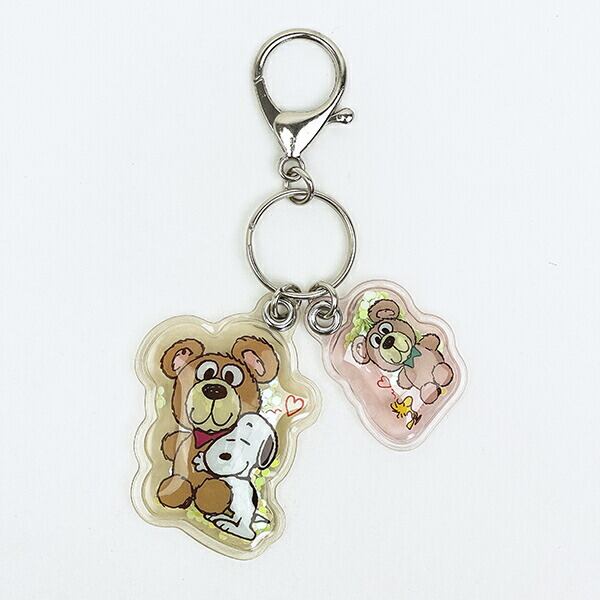 テディベアをぎゅって抱きしめているデザインが可愛いスヌーピーのキーホルダーです。空気の入ったぷにぷにのキーホルダーの中にはキラキラスパンコーン入り♪スヌーピー好きにはたまらないデザインとなっています!同シリーズでデザイン違いが2種類ありお揃いでつけてもOK♪プレゼントにもおすすめ??