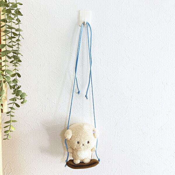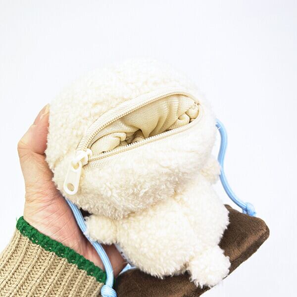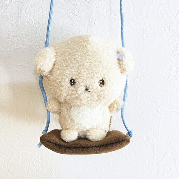 ブランコに乗っているようなデザインのポシェットです。紐の調節ができるのが嬉しい。チャックを開けると小物が入ります♪
