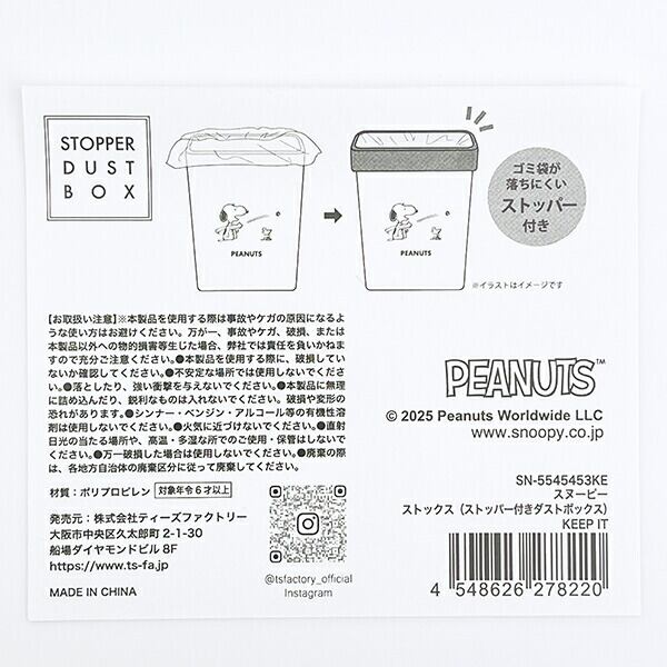 スヌーピー ストックスストッパー付きダストボックス (KEEPIT) SNOOPY