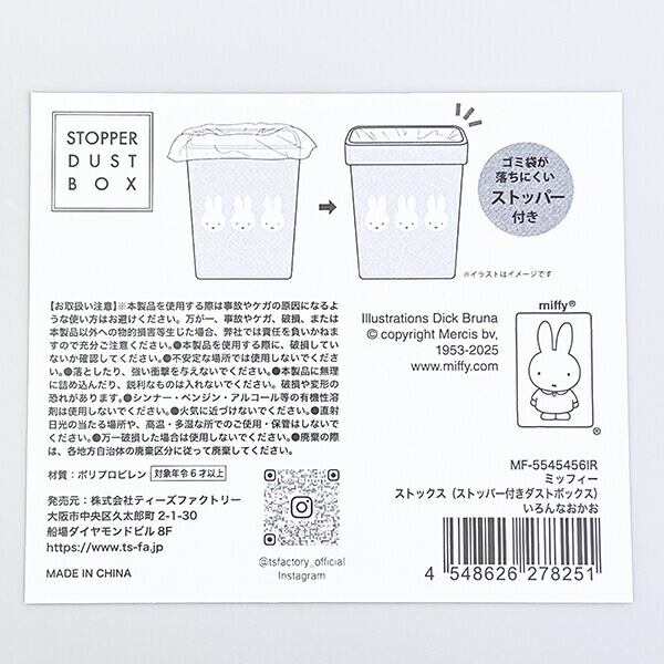 ミッフィー miffy いろんなかお ストックスストッパー付きダストボックス