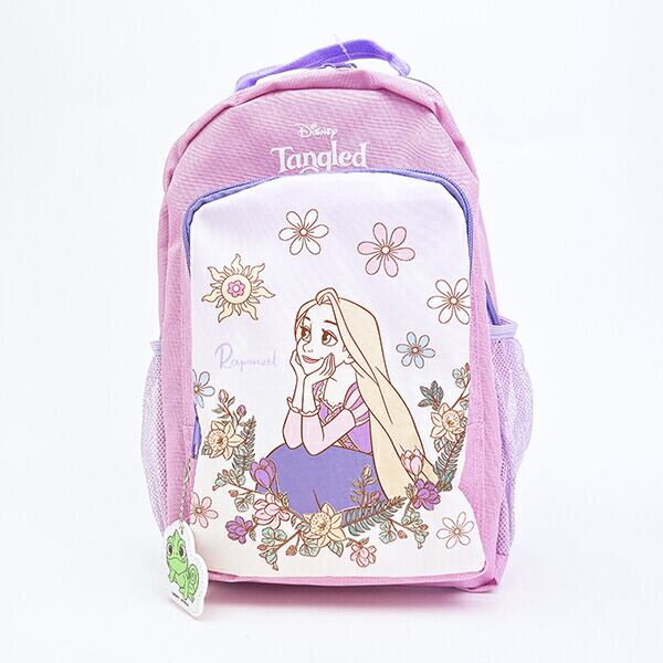 ラプンツェルデザインのデイパックです。内ポケットと外ポケットがついていて使い勝手◎内ポケットにはお名前などの記入が可能なのでもしもの時も安心☆ショルダーベルトはズレを防ぐハーネス仕様なので小さいお子様でも安心してお使いいただけます!普段使いにはもちろん、登園バッグとしてもおすすめ♪お子様も喜ぶこと間違いなしです☆彡