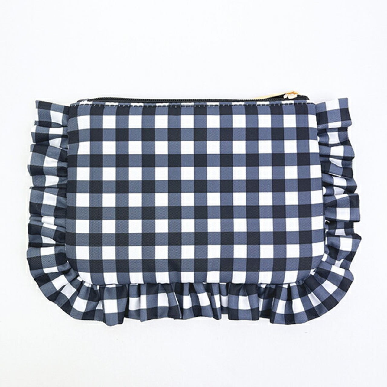 モンチッチ ギンガムチェック フリルポーチ 黒 レトロ