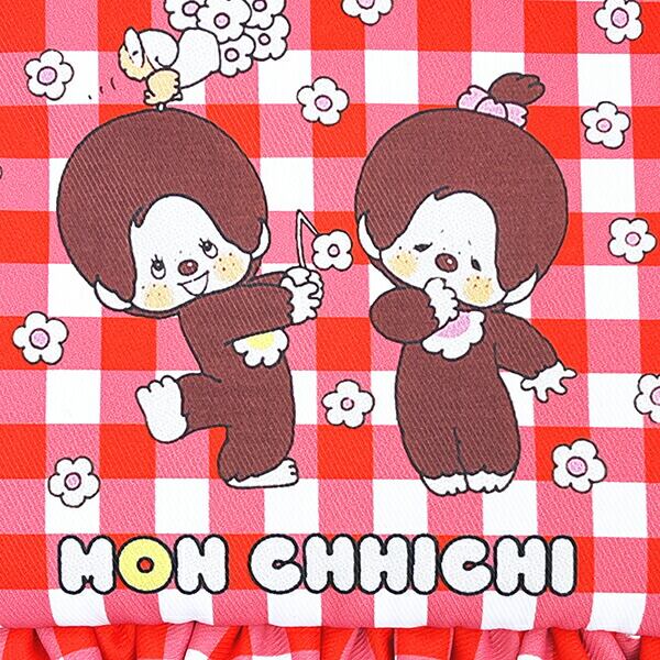 モンチッチ ギンガムチェック フリルポーチ 赤 レトロ