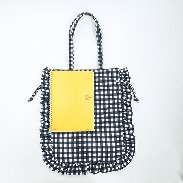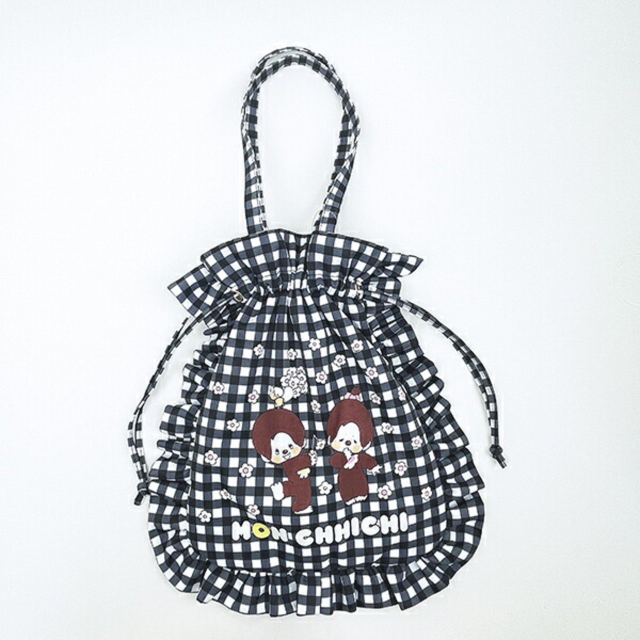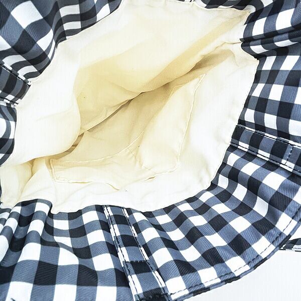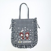 モンチッチ ギンガムチェック フリル巾着トートバッグ 黒 レトロ