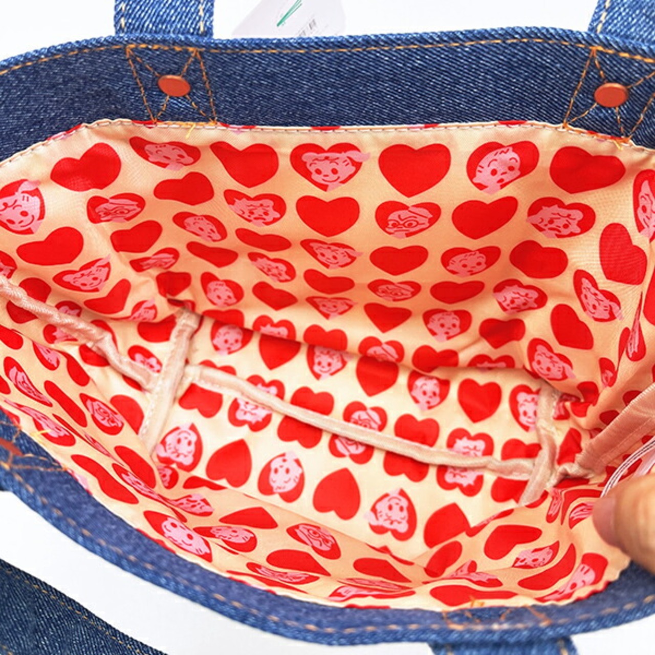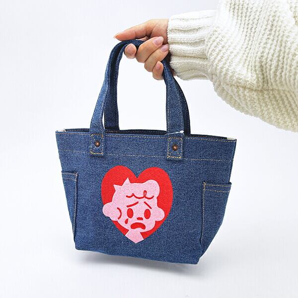 ペティの表情がキュートなEDWINコラボのデニムポーチです。真っ赤なハートがアクセントになって、持つだけで気分も上がっちゃう♪♪ちょっとしたお出かけやランチバッグにもぴったりなサイズ感です☆