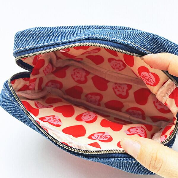 ジルの表情がキュートなEDWINコラボのデニムポーチです。真っ赤なハートがアクセントになって、持つだけで気分も上がっちゃう♪♪メイク用品や小物を入れるのにぴったりなサイズ感です☆
