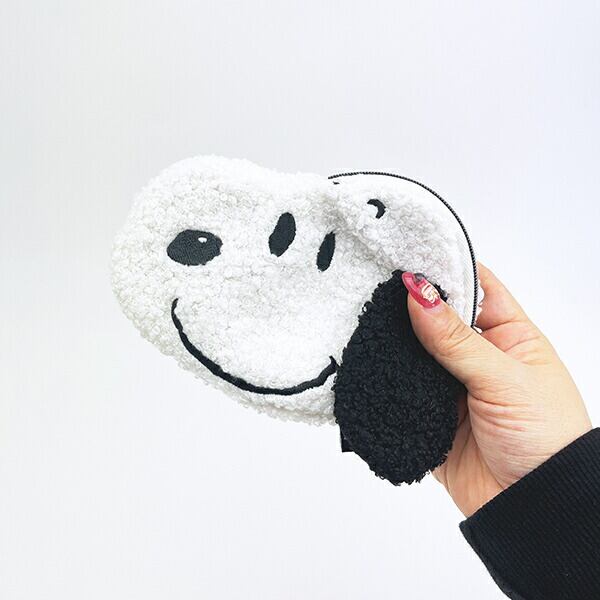 スヌーピーのダイカットフェイスポーチです☆スヌーピーの愛くるしいフェイスがそのままポーチに♪もこもこした触り心地も◎バッグの中で、ごちゃごちゃしやすいリップやイヤホンなどの小物入れとして使って、スヌーピーといつも一緒にいられます☆彡