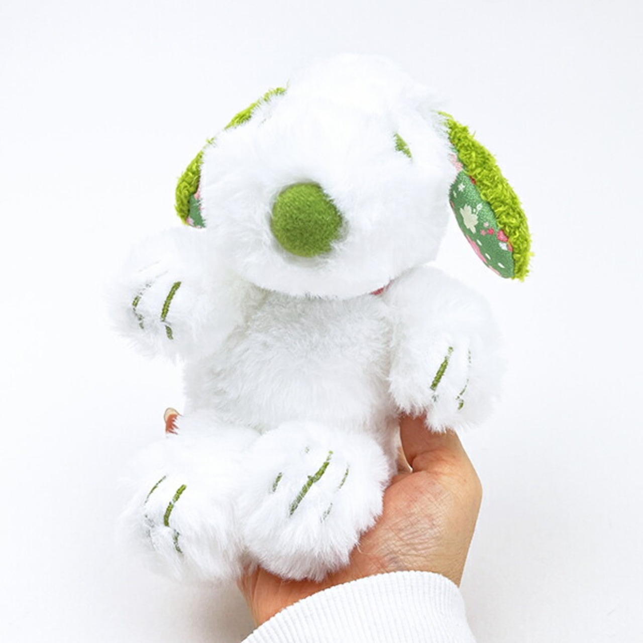 スヌーピーの人気のふわくたぬいぐるみです。抹茶色×お耳の裏が桜デザインになっておりとってもキュート♪お知りにビーンズが入っていて自分で座ってくれるのも嬉しい♪両手で包み込めるサイズなので一緒にお出かけもするもの◎ぜひ同デザインのマスコットと一緒に揃えてみてください☆彡