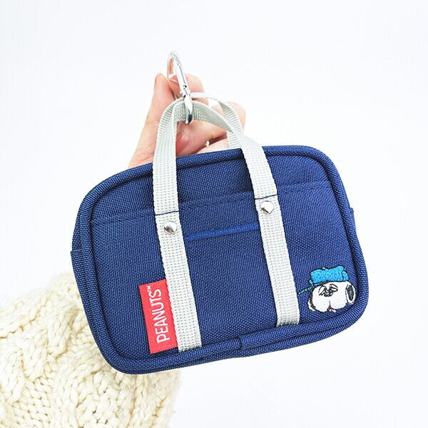 スヌーピーのスクールバッグ型がかわいいポーチです!カラビナ付きで色々な場所に簡単に取り付けられます◎外ポケットも付いていて、ちょっとしたものを入れておくのにとっても便利!!