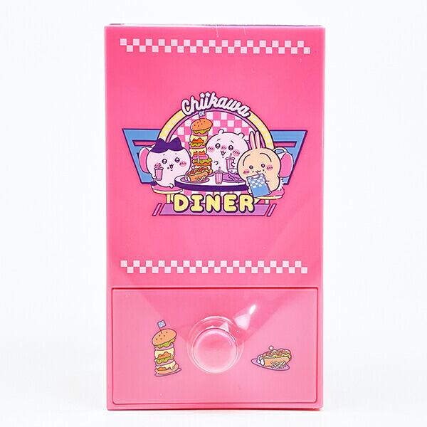 アメリカンダイナーで楽しく食事をするちいかわたちを80年代ポップなカラーリングでアレンジしました!背景の小物にも注目!!レストランの卓上POPをイメージした四角柱のペンスタンドです。小物が入る引き出し付きなので、消しゴムやクリップなど小さい物も一緒に収納できて便利☆ぜひ同シリーズのアイテムで揃えてみませんか♪