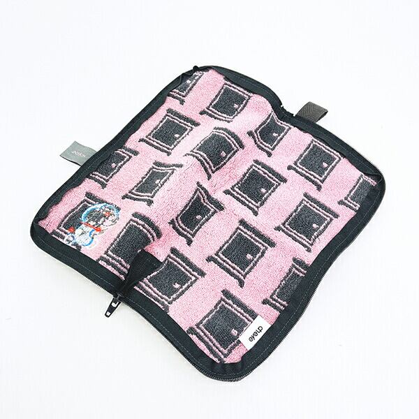 タオルのふりをしたポーチ☆ペットボトルや缶飲料を入れるのにぴったりです。小物入れや、濡れた傘など入れたりと用途多用♪タオル生地なので汚れてもかんたんに洗えるのがうれしいポイントです!ひみつ道具と一緒のドラえもんがかわいいい♪