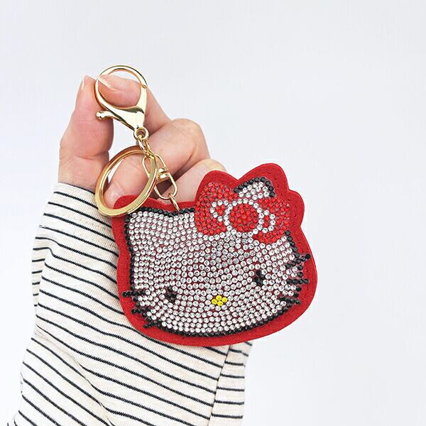 揺れるたびにキラっとして高級感のあるハローキティのキーホルダーです。触ると厚みのある生地で1つ1つ丁寧にビーズが貼ってあります★お気に入りのカバンやリュックに付けてお出かけしませんか♪同シリーズでブラックもございますのでお友達や親子でお揃いでつけてみませんか♪