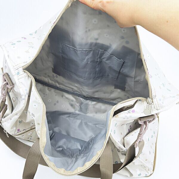 ミッフィー miffy 小花 折りたたみボストンバッグ(L) グレージュ