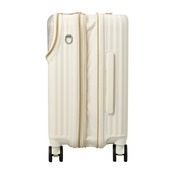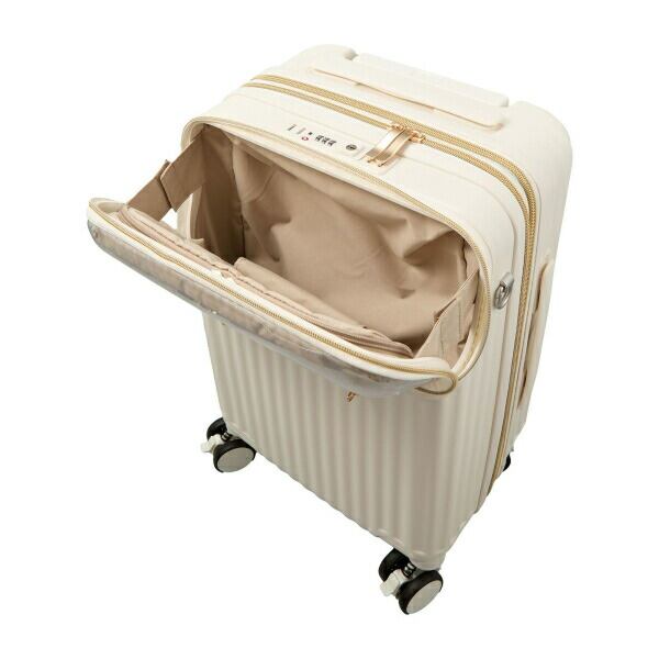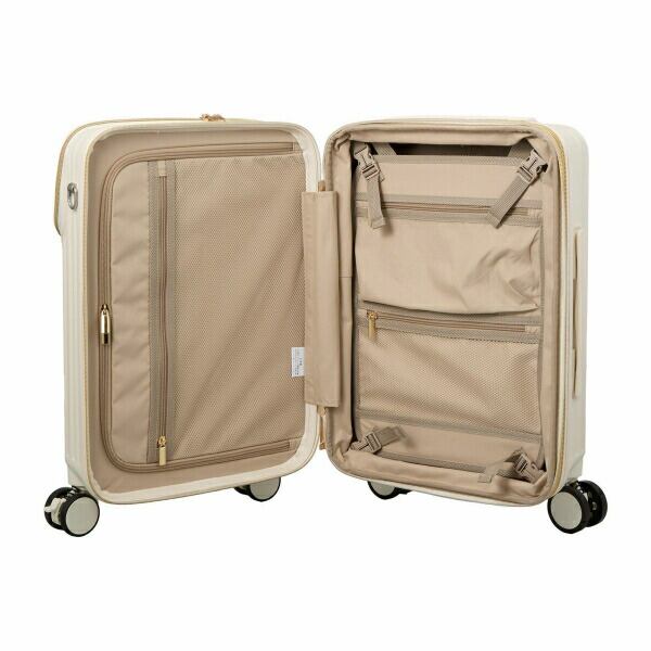 スーツケースの上がパカっと開いて荷物の出し入れができる『上パカ』仕様。すぐに取り出したいアイテムの収納に便利です。さらに上パカ部分は3つのポケットに分かれているので仕分けして収納することができます。透明ポケットは、ぬい活や推し活アイテムを収納するのに最適です。(※上パカ部分から本体収納へは繋がっていません。)荷物やお土産が増えても安心の『拡張機能』搭載。拡張ファスナーを広げると容量が約6Lアップします。ボディには剛性・耐衝撃性がある『ABS樹脂』に、飛行機の窓などにも使われる頑強・軽量素材の『ポリカーボネート』を加えた混合素材を採用。キャスターはダブルキャスターなので凹凸の多い路面でも安定した走行が可能。更に衝撃吸収サスペンションキャスターなので振動が手に伝わりにくく疲れにくい。さらに電車等に乗った際に便利なストッパー機能付き。背面にはカップホルダー付きなのでペットボトル等を簡単に収納してスーツケースを持ち歩くことができます。片側側面にはスライド式の荷物フックが付いているので買い物袋等を掛けることもできます。もう片側の側面にはカラビナフック付き。お気に入りのキーホルダーや小物を取り付けられます。ロックはシフレロックシステム(シフレ独自開発の2way式ロックシステム。カギでも番号でもどちらでも開閉が可能)を採用。さらに、アメリカ方面への旅行時、鍵をかけたまま航空会社に荷物を預けることが可能なTSロックも搭載。内装フタ側の間仕切りはファスナーで閉じられるので、開閉時に荷物がこぼれず便利。胴側はバックル留めの間仕切りとクロスベルト仕様なのでお荷物の荷崩れを防止することができます。100席以上の機内持ち込み可能サイズです。【内寸:約H48×W34×D24-28cm】【重量:約3.9kg】【容量:約33-39L】【宿泊目安:約1〜2泊】【キャスター:ストッパー付きサスペンションキャスター】【ロック:シフレロック(2wayダイヤル&キーロック)、TSロック】